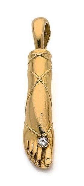 Pendentif "pied féminin", diamant et or 18K (750).