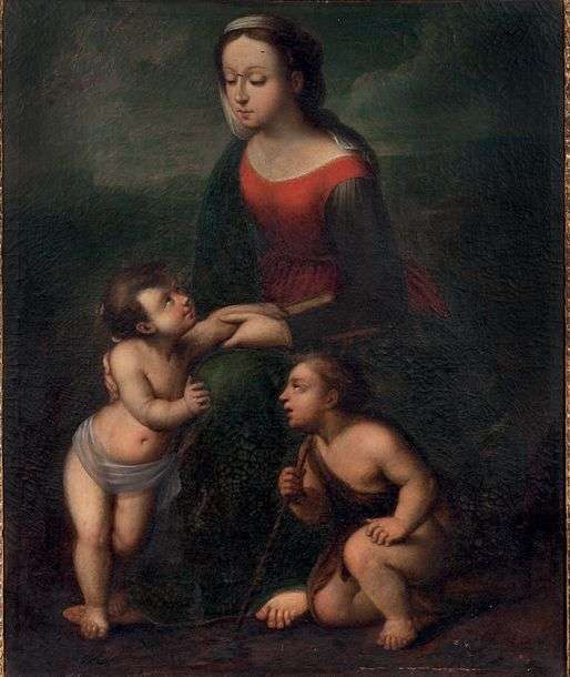 Reprise du tableau de Raphaël conservé au Louvre (voir P. de Vecchi, Raphaël, Paris, 1969, n°69, reproduit).