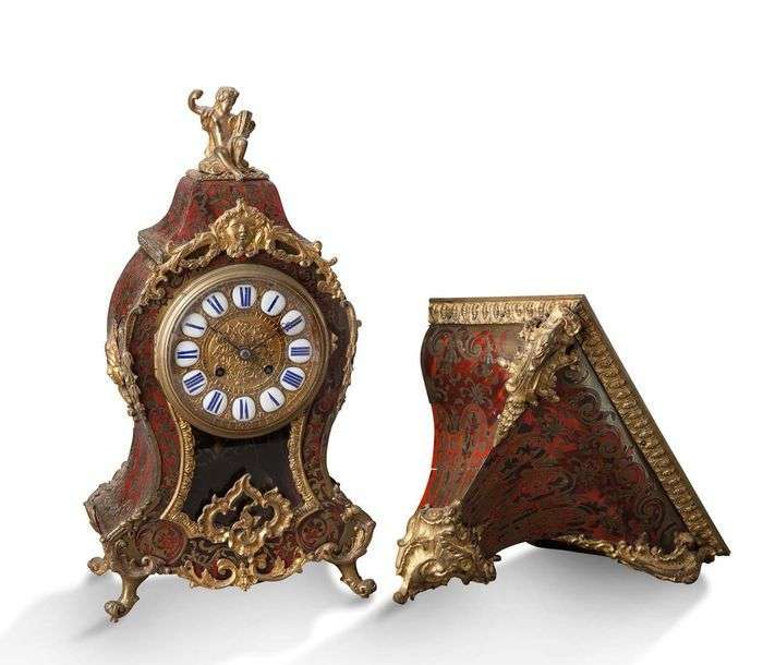 PETIT CARTEL de forme violonnée en marqueterie boulle de laiton et écaille
