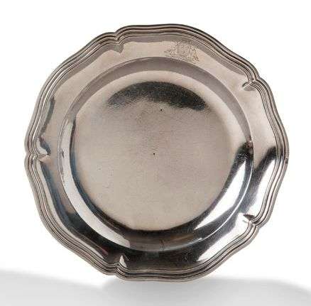 PLAT en argent armorié, modèle à filets