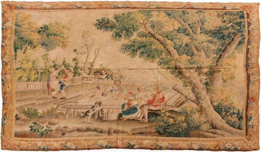 Tapisserie d'Aubusson en laine et soie représentant "Le déjeuner champêtre