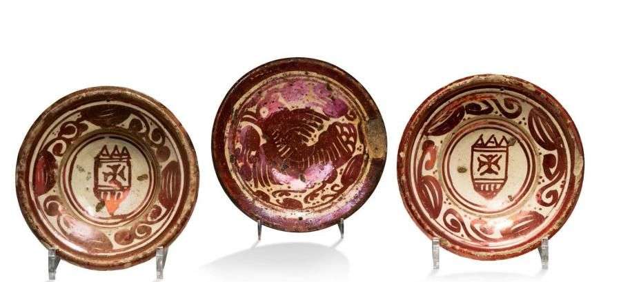 TROIS PETITES COUPES HISPANO-MAURESQUES en céramique lustrée.