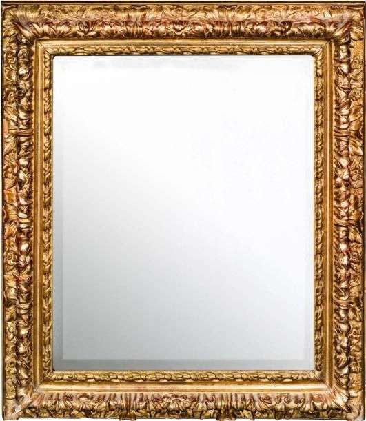 MIROIR rectangulaire en bois sculpté et doré à décor de frises feuilles d'