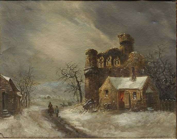 Paysage d'hiver avec une chaumière