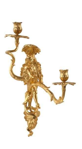 PAIRE D'APPLIQUES en bronze ciselé et doré à deux bras de lumière et à décor aux chinois.