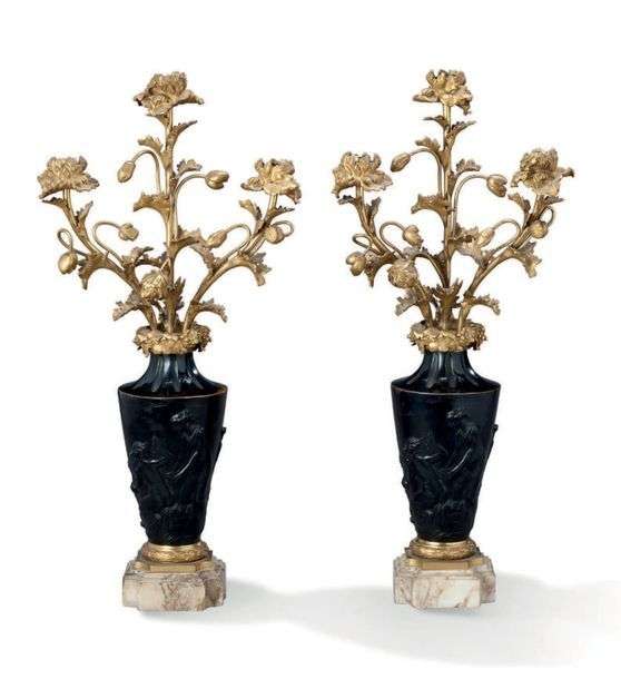 PAIRE DE CANDÉLABRES en bronze patiné et doré.