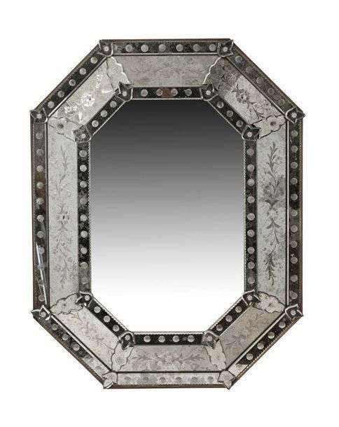 MIROIR HEXAGONAL en plaques de verre ciselé à décor de fleurs