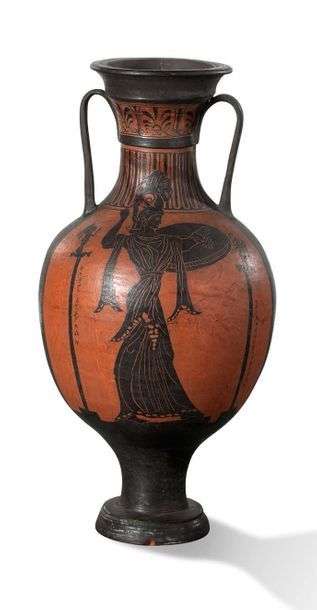 AMPHORE en terre cuite à figures noires représentant Athena.