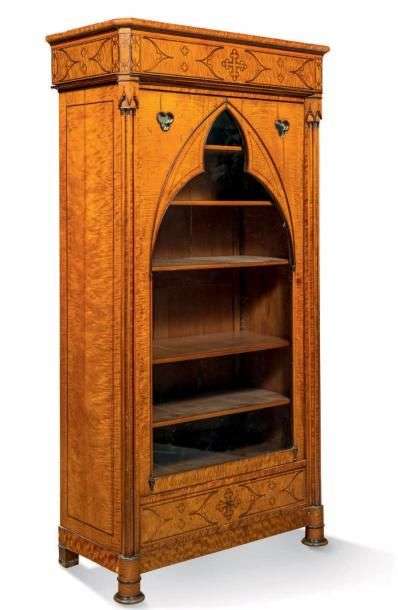 VITRINE de forme rectangulaire en placage de loupe et décor de filets.