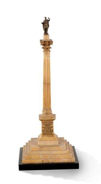 COLONNE en marbre jaune de Sienne surmontée d'une statuette de femme drapée à l'antique