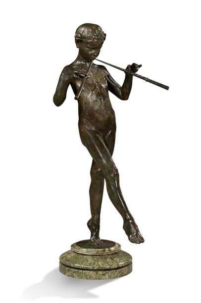 Bronze à patine brun-vert reposant sur un socle circulaire vert signé sur la terrasse E. PIRON H: 68 - H totale: 76 cm