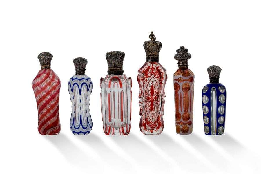 COLLECTION DE VINGT-CINQ PETITS FLACONS À SEL en cristal, verre polychorme
