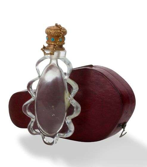 FLACON À SEL EN CRISTAL À CABOCHON en or serti d'une rangée de turquoises
