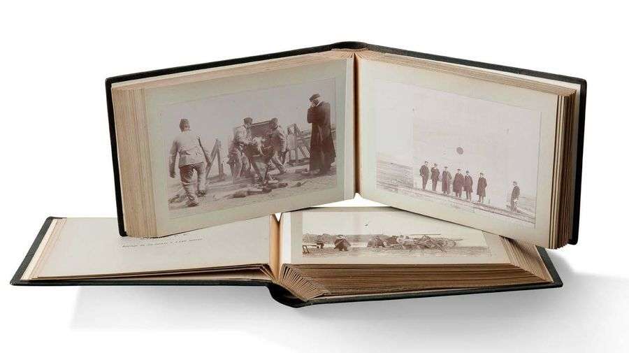 CANET Album de photographies en noir et blanc représentant les essais effectués au polygone d'Harfleur en février-mars 1904 33 tirages