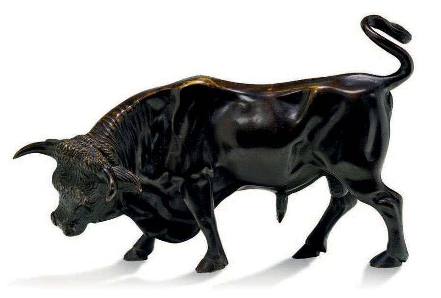 • Taureau Sculpture en bronze à patine brune H: 18 - L: 27 cm