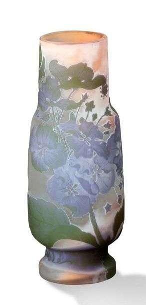 Petit vase à piédouche et col resserré en verre à décor gravé et dégagé à l'acide de fleurs et feuillage.