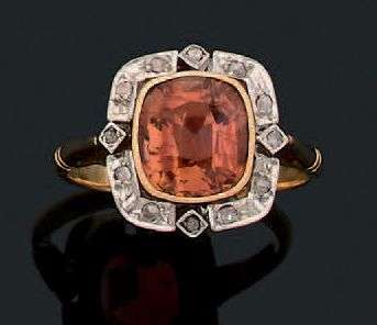 Tourmaline, diamants taillés en rose, or 18k (750).