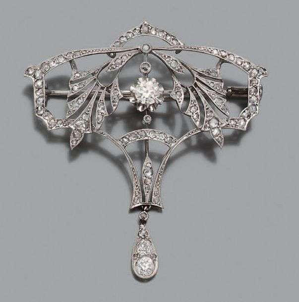 Diamants de taille ancienne, taillés en rose, platine (950) et or gris 18k (750)