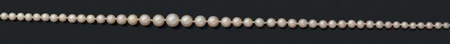 Collier de 125 perles en chute, fermoir diamantsPb: 11,75 gr