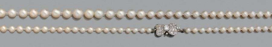 Perles fines - CARTIER Collier de 108 perles en chute, fermoir diamants. S