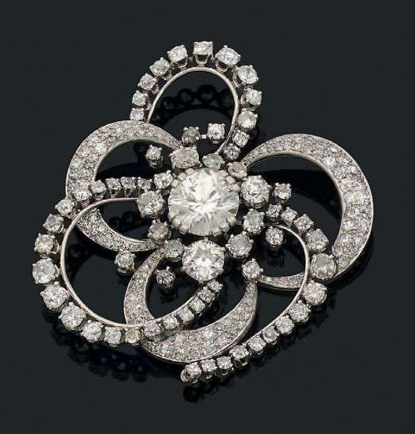 A diamond, gold and platinum brooch.