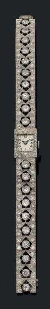 A diamond, platinum and gold wristwatch.