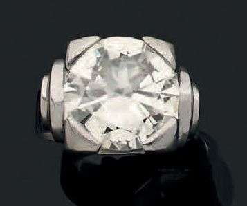 Chevalière style Art Déco, diamant de taille brillant, platine (950)