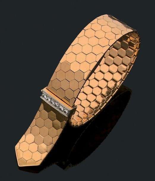Or jaune 18k (750) diamants de taille brillant sur la boucle. Vers 1940.