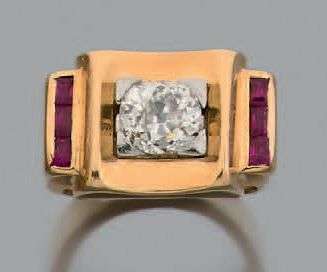 Diamants de taille ancienne, pierres rouges, or 18k (750). Vers 1940.