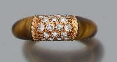A eye of tiger, diamond, and gold ring by VAN CLEEF & ARPELS. Signed and numbered.
