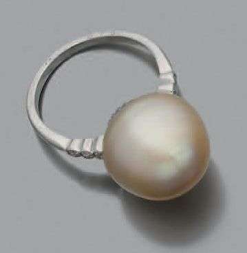 Perle de culture dorée, petits brillants, or blanc 18k (750).