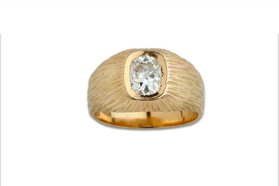 Diamant taille ancienne, forme coussin, or 18k (750).