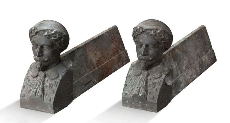 Paire de chenets en fonte de fer, figurant le buste de Napoléon III en ten