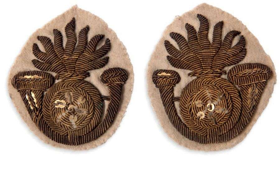 ? Paire d'ornements de retroussis de basques, au modèle des chasseurs à pied de la Garde Impériale.