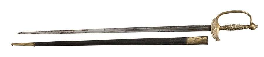 Coquille ornée de l'aigle impériale flanquée de drapeaux. Clavier à piston. Lame à deux gorges puis arrête médiane de Klingenthal.