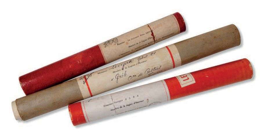 Les trois diplômes sont roulés dans des tubes de la grande chancellerie.