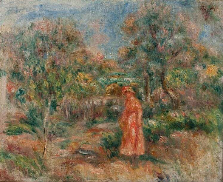 Femme en rose dans un paysage à Cagnes