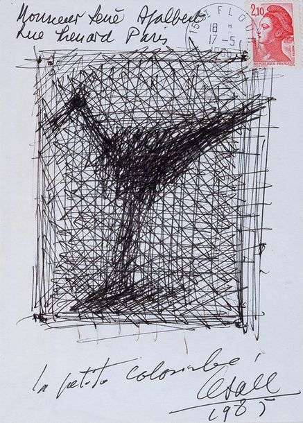 Black pen on paper, signed, titled dated| on an autograph enveloppe, signed (Saint-Flour 17 mai 1985), to René Ajalbert in Paris