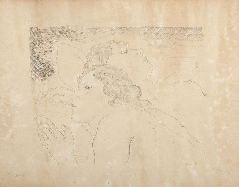 Lithographie sur simili Japon signée dans la planche, numérotée 57/ 68. Signature au crayon en bas à droite sans doute apocryphe.