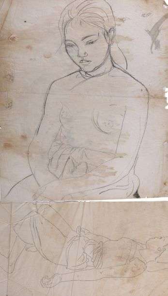 Jeune fille assise et Jeune garçon assoupi