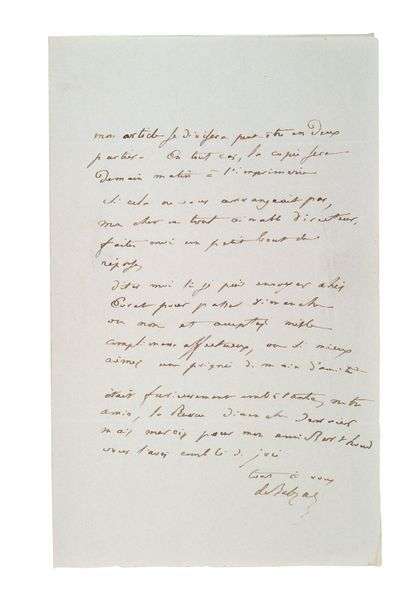 Lettre autographe signée adressée au directeur de la Revue de Paris
