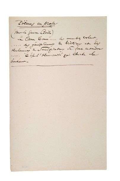Pour la guerre civile, manuscrit autographe avec la suscription «Poèmes en prose»