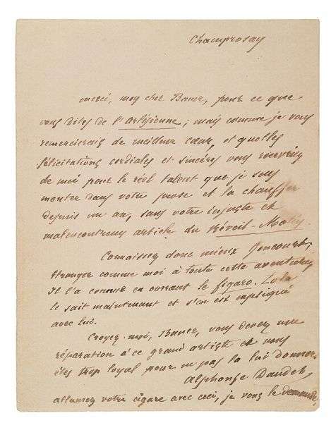 Il le remercie pour ce qu'il dit de L'Arlésienne et le félicite pour le réel talent qu'il sent monter dans sa prose.