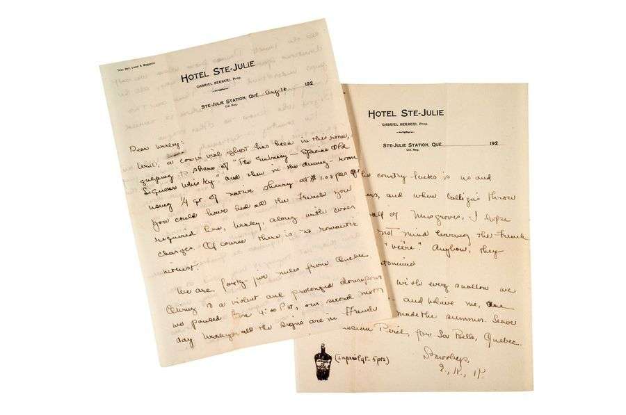 Québec, Sainte-Julie, 16 août [années 1920], 3 pages rectoverso in-4 à l'encre, en anglais. (Légère tâche très pâle d'humidité sur le bord inférieur).