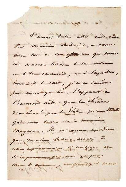 Importante lettre inédite au rédacteur en chef d'un journal libéral qui le soutient, écrite la veille de la première représentation d'Hernani.