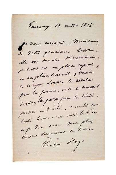 Guernesey, 19 août 1878, 1 page in-8 à l'encre noire