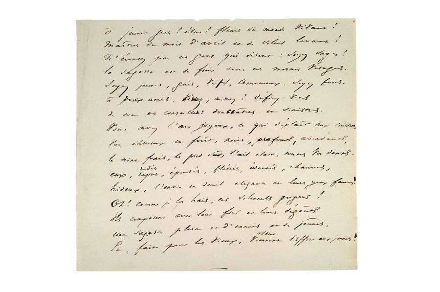 Ô jeunes gens! poème autographe 16 vers sur une page in-8 oblong.