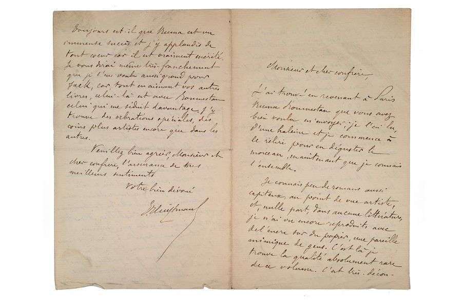 Lettre autographe signée adressée à Alphonse DAUDET S.l., [1881?], 4 pages in-12 à l'encre. (Pliures).