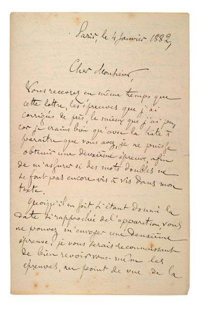 Paris, 4 janvier 1882, 3 pages in-12 à l'encre
