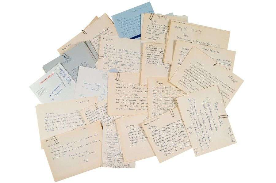 Ensemble de 28 lettres autographes, la plupart signées, adressées à Roger NIMIER Encre et stylo à bille, différents formats, l'une avec dessin original, certaines enveloppes conservées à l'adresse de Gallimard 28 lettres autographes adressées à son ami écrivain «hussard» Roger